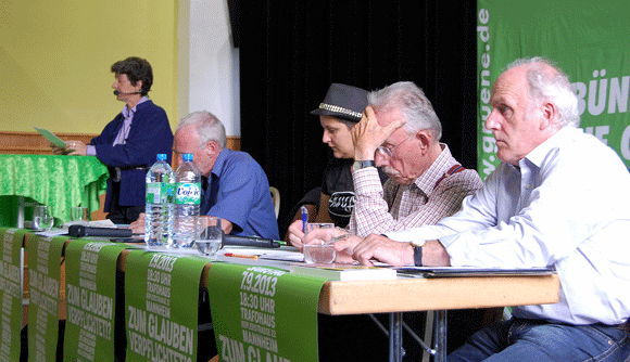Den einführenden Vortrag hielt Corinna Gekeler. Die Autorin des Buches „Loyal dienen“ steckte den Rahmen, in dem die Diskussion dann verlaufen sollte, ab. Sie riss kurz einige Fälle an, um zu verdeutlichen, wie weit die „Loyalitätsobliegenheiten“ in Arbeitsalltag und Privatleben der Beschäftigten hineinwirken. Dann erläuterte sie die Rechtslage, insbesondere die Trendwende seit dem Urteil des Europäischen Gerichtshofes für Menschenrechte im „Fall Schüth“. In ihren Ausführungen über die Möglichkeiten, politisch eine Veränderung herbeizuführen, ging sie vor allem auf die Positionen der Grünen ein. Während sie die Passage zum Kirchlichen Arbeitsrecht im Bundestagswahlprogramm begrüßte, kritisierte sie den von Volker Beck im Mai eingereichten Gesetzentwurf zur Änderung des Allgemeinen Gleichbehandlungsgesetzes als „halbherzig“.