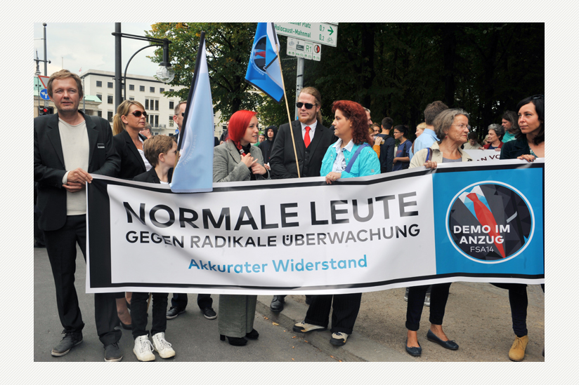 Die staatliche Überwachung stellt für Sebastian Schweda “eine massive Verletzung des Menschenrechts auf Privatsphäre dar” und Matthias Spielkamp machte für die Reporter ohne Grenzen klar, dass “wir überhaupt keine Geheimdienste wollen, wenn unsere Regierung und unsere gewählten Vertreter in den Parlamenten nicht in der Lage sind, dafür zu sorgen, dass sie sich an Recht und Gesetz halten.” Doch er machte auch Mut: “Wir sind nicht hilflos und ohnmächtig. Wir können uns wehren, indem wir unsere E-Mails verschlüsseln. Indem wir unsere Internetverbindungen verschlüsseln. Indem wir unsere Daten auf unseren USB-Sticks und Festplatten verschlüsseln. Indem wir die Kosten für die Dienste erhöhen, uns auszuspionieren.”