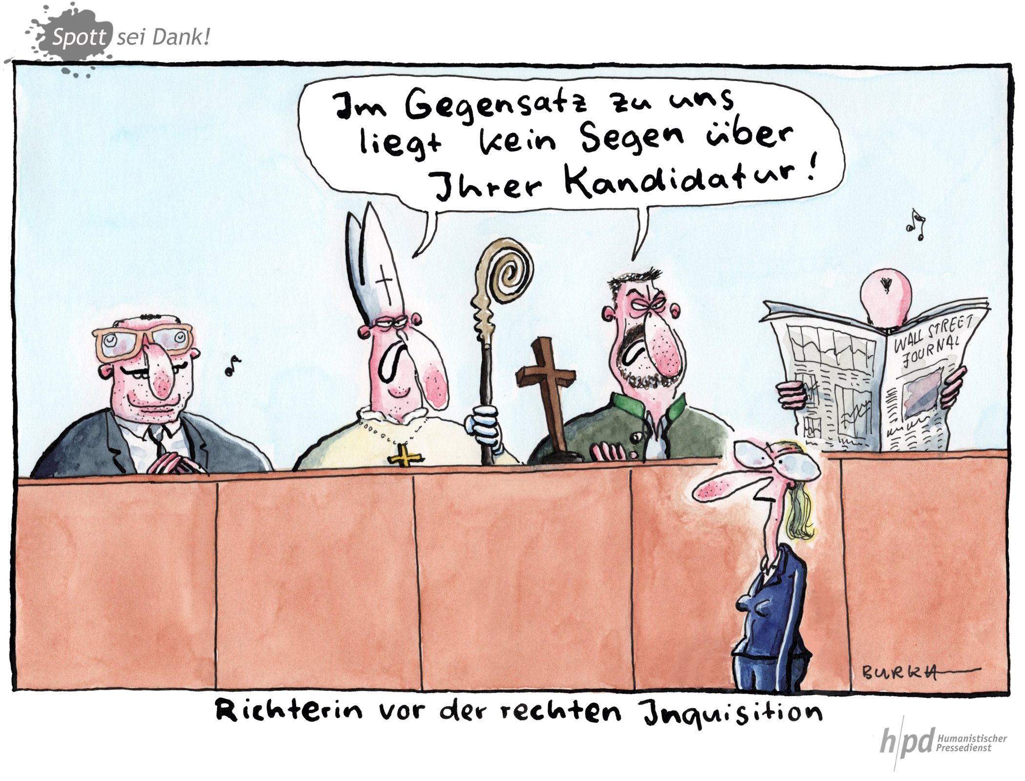 Einmal pro Jahr, das ist mittlerweile Tradition, werden die zweimal wöchentlich in der Rubrik "Spott sei Dank!" des Humanistischen Pressedienstes erscheinenden Karikaturen in einem Buch zusammengefasst. Gerade ist der siebte Band erschienen.
