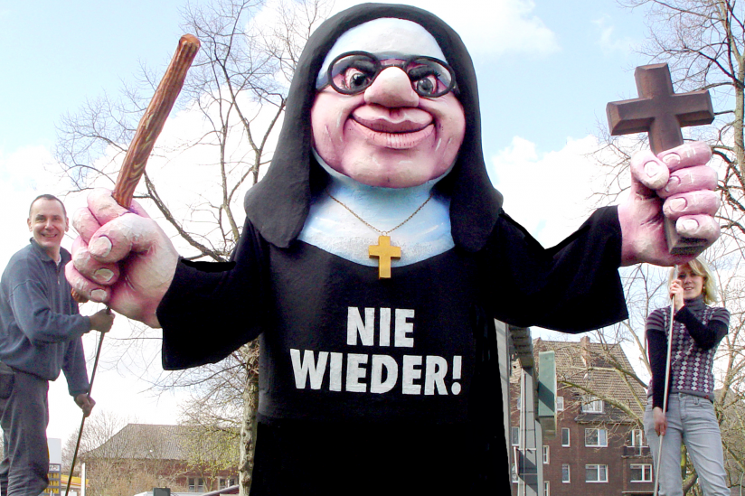 Zum Symbol für diese Aufklärungsbewegung wurde die "Prügelnonne". "Deutschlands bekanntester Karnevalswagenbauer, Jacques Tilly, steuert zur Demo der ehemaligen Heimkinder am 15. April [2010] in Berlin eine mobile Skulptur bei, die für Gesprächsstoff sorgen dürfte: eine drei Meter hohe 'Prügelnonne', die in einer Hand ein Kruzifix, in der anderen einen Rohrstock schwingt", heißt es in einem hpd-Artikel vom 30. März 2010.