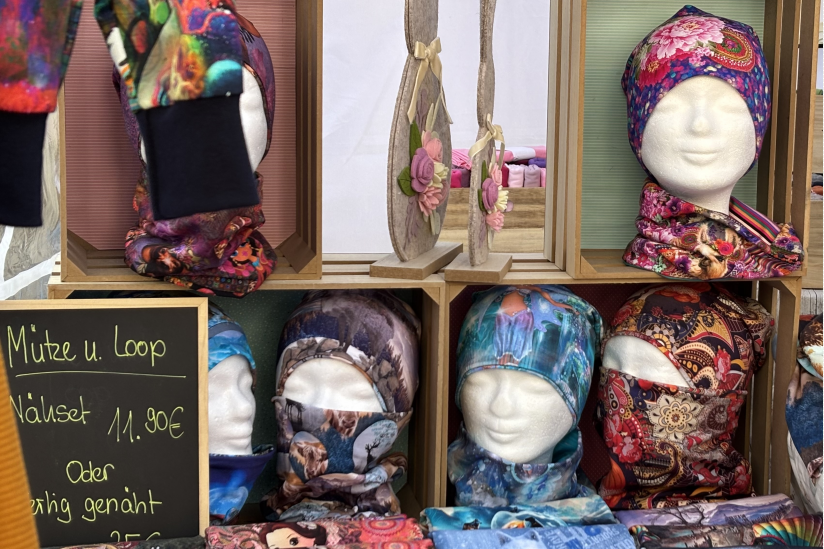 Zuvor aber noch ein Blick nach England. Die obige Text-Bild-Schere habe ich in einer Westfield-Shoppingmall fotografiert. Im Text sind Kopfverhüllungen aus religiösen Gründen klar erlaubt, aber der abgebildete Jediritter (Mitte oben) wird mit einem weißen Kreuz markiert, was vermutlich ein Verbot zum Ausdruck bringen soll. Wie soll sich der Jedi nun verhalten? (Ein mitgeführtes Nudelsieb würde dieses Problem freilich einfach lösen.)