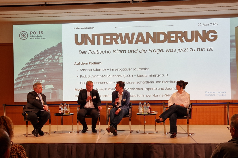 Auf dem anschließenden Podium diskutierte der Autor, moderiert von Joseph Röhmel (BR/ARD/Deutschlandfunk), mit Gülden Hennemann (Politikwissenschaftlerin und Muslimin, Mitglied des Beraterkreises für Islamismusprävention und Islamismusbekämpfung beim Bundesinnenministerium) und Prof. Winfried Bausback (MdL, CSU, Bayerischer Staatsminister a.D.).