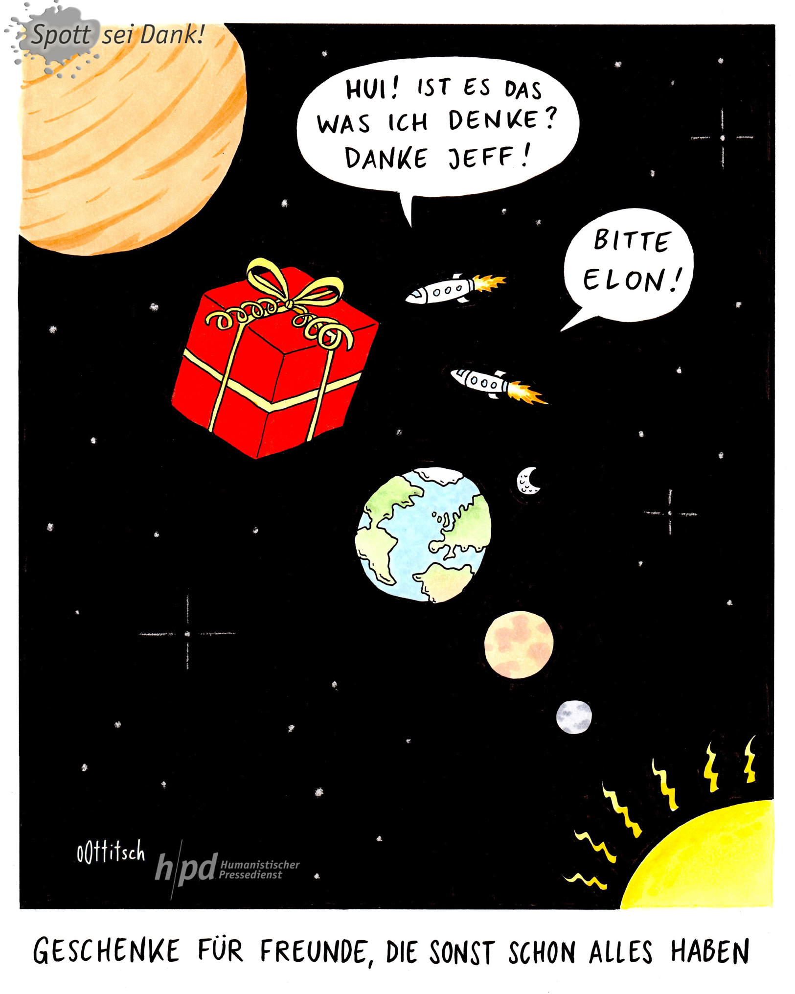 Heute ist Black Friday, im Internet wie in den Innenstädten wird zum Konsumieren eingeladen. Vielleicht wollen Sie stattdessen lieber sinnstiftend investieren? Dann freuen wir uns auf eine Unterstützung für den säkularen Journalismus. Denn der wird zwar umsonst bereitgestellt, ist aber nicht kostenlos. Mehr →