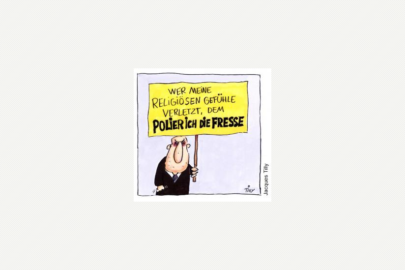 In Deutschland war das Bekenntnis zur Pressefreiheit fast immer durch den Nachsatz ergänzt, daß auf religiöse Überzeugungen Rücksicht genommen werden müsse, und Bundeskanzlerin Angela Merkel war mit ihrem Verständnis für „die Gefühle vieler Muslime", das allerdings in der Gewaltbereitschaft eine Grenze finde, nicht alleine.(5) Ein Vierteljahr später zeigten die konservativen Reaktionen auf die vom Musiksender MTV ausgestrahlte Zeichentrickserie Popetown, wie weit es mit den Lippenbekenntnissen her war. Der Vorsitzende der CSU-Landtagsfraktion, Joachim Herrmann, erstattete Strafanzeige gegen den Sender, die Senioren-Union wollte MTV gar die Lizenz entziehen lassen.(6) So konnte es kaum verwundern, daß der bayerische Ministerpräsident Edmund Stoiber als Konsequenz aus dem Karikaturenstreit die Meinungsfreiheit nicht gestärkt, sondern durch eine Verschärfung des § 166 StGB geschwächt sehen wollte. Beim „Spitzengespräch" in der Staatskanzlei Anfang Juni waren Vertreter der beiden großen christlichen Religionsgesellschaften, der griechisch-orthodoxen Kirche und der israelitischen Kultusgemeinde anwesend(7) - hingegen kein Vertreter der Medien oder der Künstlerschaft. In einer Deutlichkeit, die nichts zu wünschen übrig ließ, legte Stoiber seine Ziele offen: „Wir brauchen in unserer Gesellschaft einen Grundkonsens, daß nicht mit Füßen getreten werden darf, was anderen heilig ist", zitiert ihn die Süddeutsche Zeitung.(8) Im Falle mißliebiger Veröffentlichungen riet der CSU-Vorsitzende den Kirchen „lautstark [zu] protestieren", wohl wissend, daß die Wahrscheinlichkeit eines Verbots umso größer ist, je aggressiver die Intoleranz vorgetragen wird. Konsequent zuende gedacht heißt dies: den Religionsgesellschaften wird das Definitionsmonopol für den Bereich des Religiösen zurückgegeben. Bei den Kirchen blieben die Reaktionen zurückhaltend, einige Stimmen sprachen sich sogar gegen Stoibers Initiative aus; den Vorsitzenden des Rates der islamischen Gemeinschaften in Hamburg, Mustafa Yoldas, hingegen zitierte der Spiegel mit den Worten, jede Religionsgemeinschaft müsse sagen, wann „sich die breite Masse ihrer Anhänger beleidigt fühlt - und die Rechtsprechung hat dann dem zu folgen".(9) Was bleibt wohl übrig von Satire, wenn die Verspotteten zu bestimmen haben, ob sie sich verspotten lassen müssen?