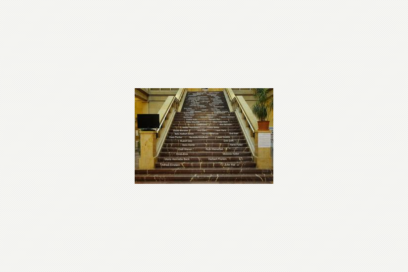 Im südlichen Lichthof sind an den Stirnseiten der 36 rotbraunen Marmorstufen die Namen der 106 Musiker/innen in großen weißen Lettern unregelmäßig angebracht. In einem Monitor werden permanent Porträts, Lebensläufe der Musiker/innen und Dokumente gezeigt.
