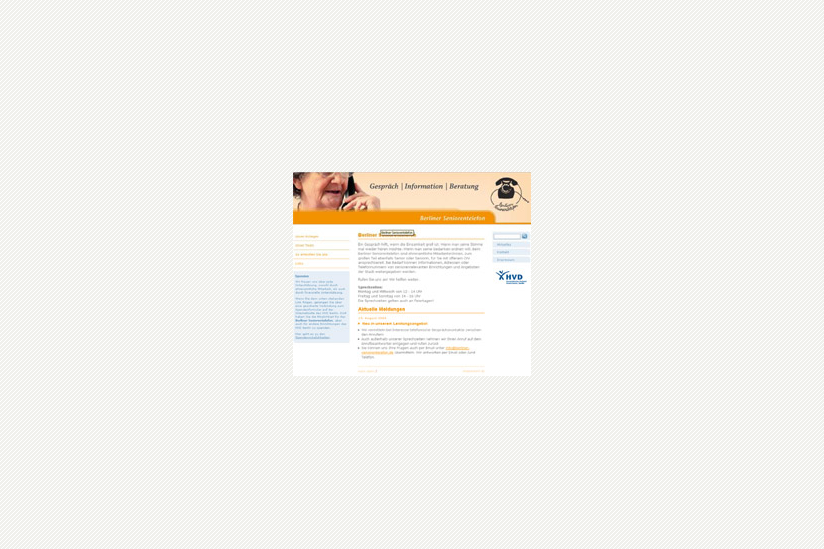 Über 20 Frauen und Männer stehen Senioren und Seniorinnen, deren Angehörigen, Bekannten und Freunden aus Berlin und Umland viermal wöchentlich am Telefon zur Verfügung. Ob es um Hilfe bei der Rente, die Gesundheit, die Wohnung, die Kinder, die Pflege, Rechtsfragen, Freizeit, Konflikte, Trauer oder die tägliche Versorgung geht, das Berliner Seniorentelefon berät einfühlsam, geduldig und kompetent.