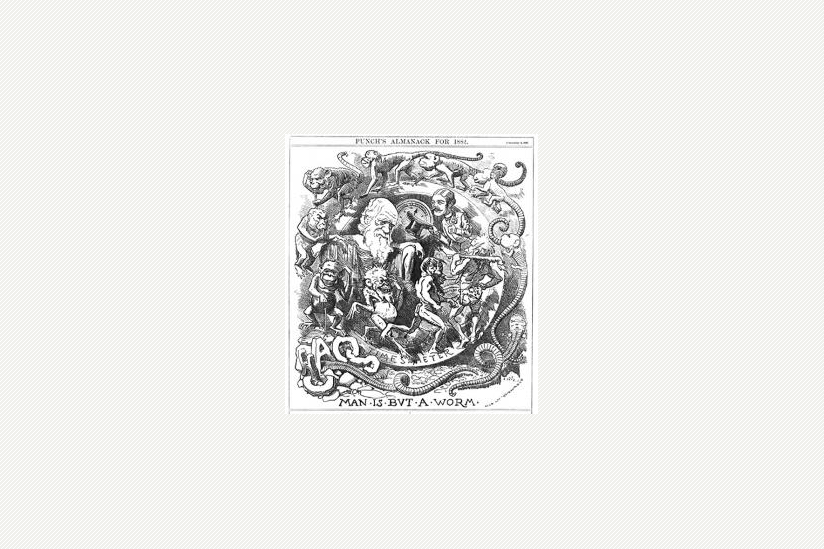 Ende 1881, kurz vor Darwins Tod im April 1882, erschien eine Ausgabe des Satiremagazins Punch mit Darwin-als-Gott in der Mitte der Evolution, die sich aus einem Wurm bis hin zum zeitgenössischen Menschen entwickelte: Man Is But A Worm.