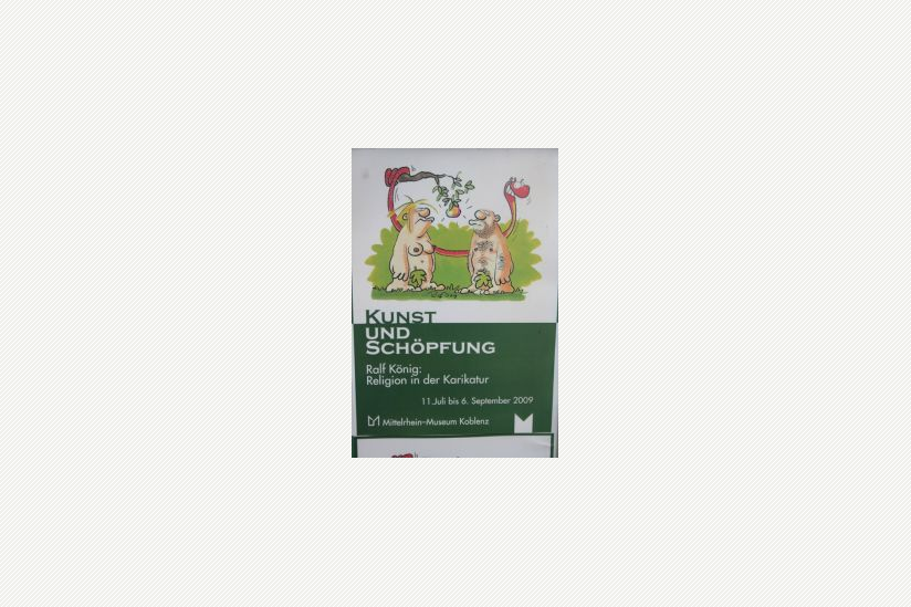 Die Ausstellung „Kunst und Schöpfung“ im Mittelrhein-Museum Koblenz, Florinsmarkt 15-17 zeigt religionskritische Werke von Ralf König vom 11. Juli bis 6. September 2009.
