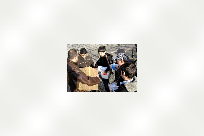 Ein langsam anschwellender Ruf schallte über den Platz vor dem Rathaus in Neukölln und übertönte den Straßenlärm. Die Klasse 5a der Richardgrundschule machte sich bereit für einen ungewöhnlichen Schultag. Sie klatschten in die Hände und motivierten sich für eine Aktion, die sie für einige Stunden in die Haut von Straßenkindern schlüpfen ließ. Ihr Plan: An einem Tag öffentlich für die Einhaltung der Kinderrechte zu streiten. Unüberhörbar, unübersehbar.