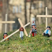 TRIER. (hpd) „Papst trifft Hitler“ stolzierten durch Trier, an den Stationen des Reichskonkordats und an den Pilgern zum „heiligen Rock“ vorbei, bis hin zur heiligen Unterhose von Karl Marx. Die Polizei nahm die Künstler zwischendurch mit auf die „Polizeiwache Heilig-Rock“ und am Abend wurde eine Ausstellung eröffnet.