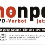 BERLIN. (hpd) Vom 27. Januar 2009 bis zum 8. Mai 2010 will die No-NPD-Kampagne, initiiert von der Berliner Vereinigung der Verfolgten des Naziregimes – Bund der Antifaschistinnen und Antifaschisten (VVN-BdA)e.V., 5.000 Gründe für ein Verbot der NPD auf einer Internetplattform zusammentragen und viele Menschen von Kap Arkona bis zum Bodensee anregen, sich mit persönlichen Meinungsäußerungen, Fotos, Zeichnungen oder mit anderen Formen daran zu beteiligen.