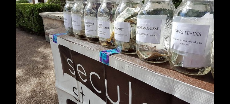 Verkaufen Atheisten ihre Seelen immer an den Teufel oder nehmen sie auch andere Verkaufsangebote an? Um zu beweisen, dass Atheisten sogar entsprechenden Offerten von Religionsgemeinschaften nicht zwangsläufig ablehnend gegenüber stehen, führten atheistische Studenten der Universität von Texas in Austin eine ungewöhnliche Auktion durch.