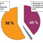 BERLIN. (hpd) In einer repräsentativen Umfrage haben sich 58 Prozent der Befragten für einen gemeinsamen Ethikunterricht als Pflichtfach ausgesprochen, mit Religionsunterricht als freiwilligem Zusatzfach. 40 Prozent sprachen sich für einen getrennten Unterricht aus.