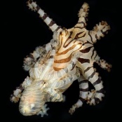 OZEANE. (hpd) Tintenfische stellen eine ideale Mahlzeit dar: Sie bestehen fast nur aus Fleisch, tragen keine Stacheln oder andere verletzende Waffen und die wenigsten sind giftig. Somit ist es in ihrem Interesse, sich jederzeit vor Räubern gut verstecken zu können. Deshalb wurden viele dieser Cephalopoden (Kopffüßer) zu Meistern von Tarnung und Mimikry. Andere nutzen dramatische Farbwechsel, um auf ihre tödliche Natur hinzuweisen.